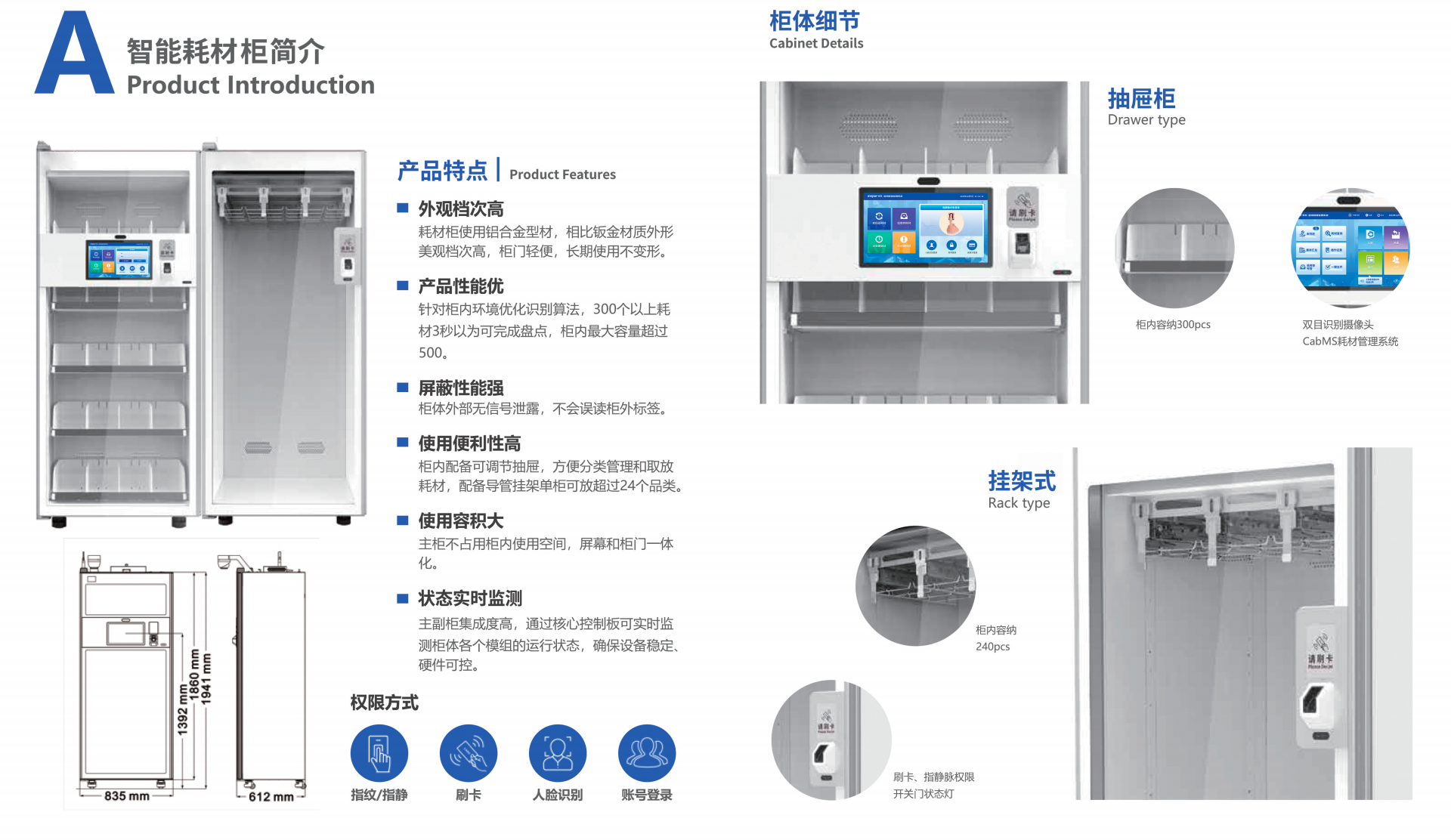 RFID 高值耗材智能柜是专为医疗组织医用高值耗材实现智能化管理的产品,产品结合了先进的RFID无线射频技术、IOT物联网等技术。产品具有前瞻性、实用性、便捷性、安全性。使用该智能化产品可实时跟踪高值耗材,降低高值耗材库存,减少产品失效损失,优化耗材收费流程。